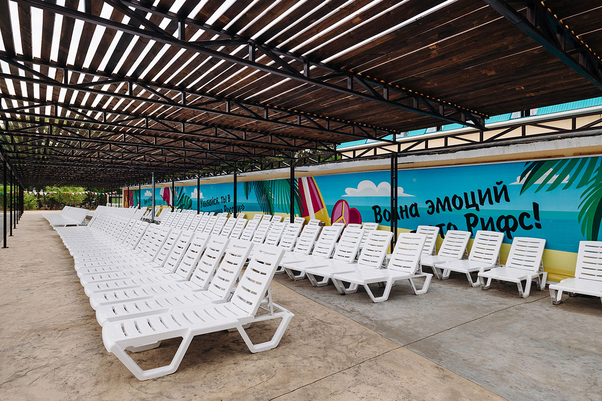 собственный оборудованный песчаный пляж, в 100 метрах от лагеря. Протяженность пляжа составляет более 1000 метров. Безопасность детей на воде обеспечивает штат спасателей, вожатых, воспитателей, медицинских работников, сотрудников службы охраны. На пляже имеются питьевые фонтанчики, душевые, кабинки для переодевания, кафе, медицинский пост, навесы, площадка для пляжного волейбола, спасательный пост, биотуалеты, шезлонги.